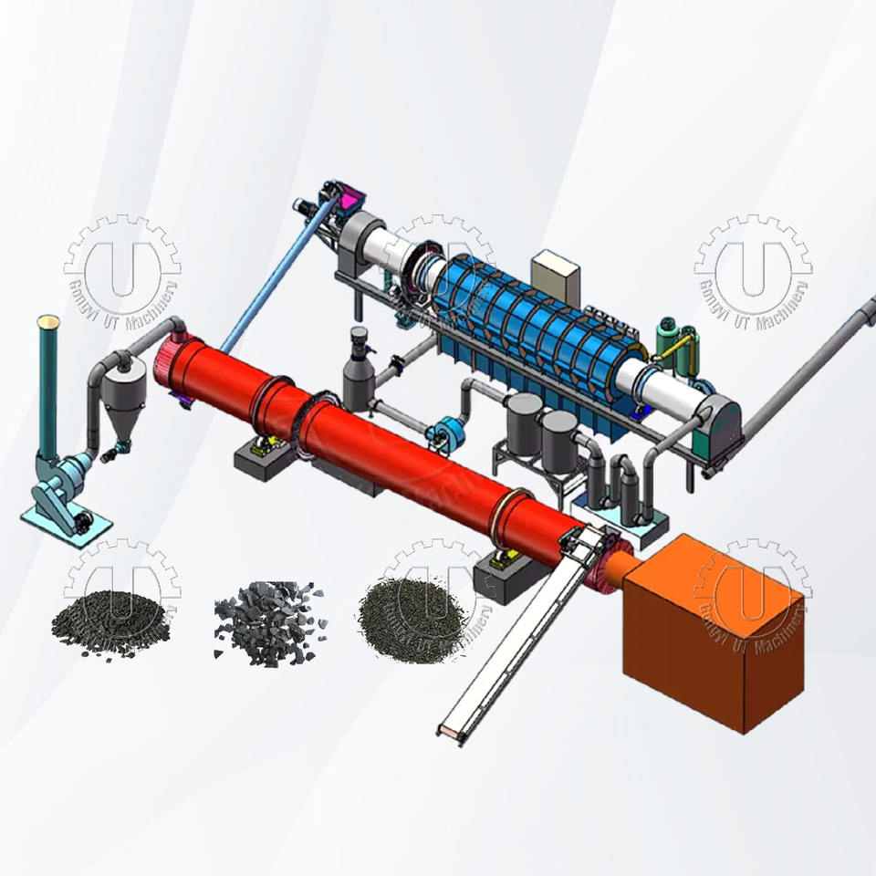 สายการผลิตถ่านแบบต่อเนื่องเครื่องทำถ่านคาร์บอนไม้ถ่านกัมมันต์