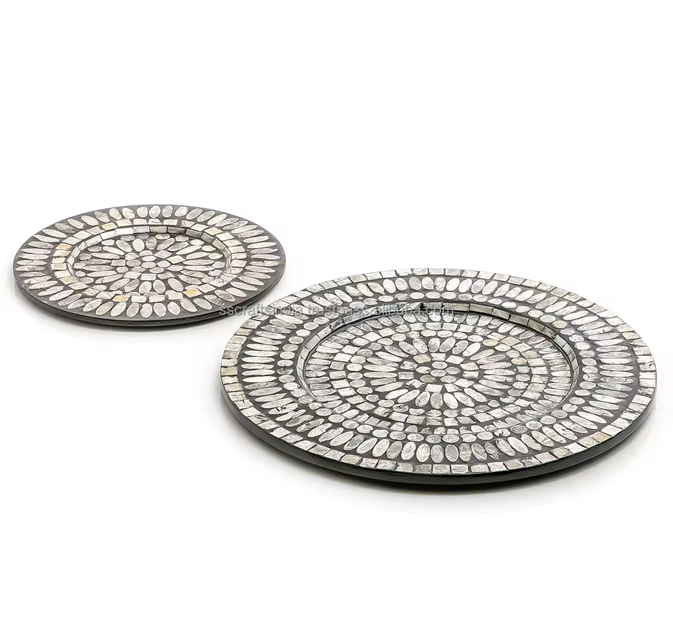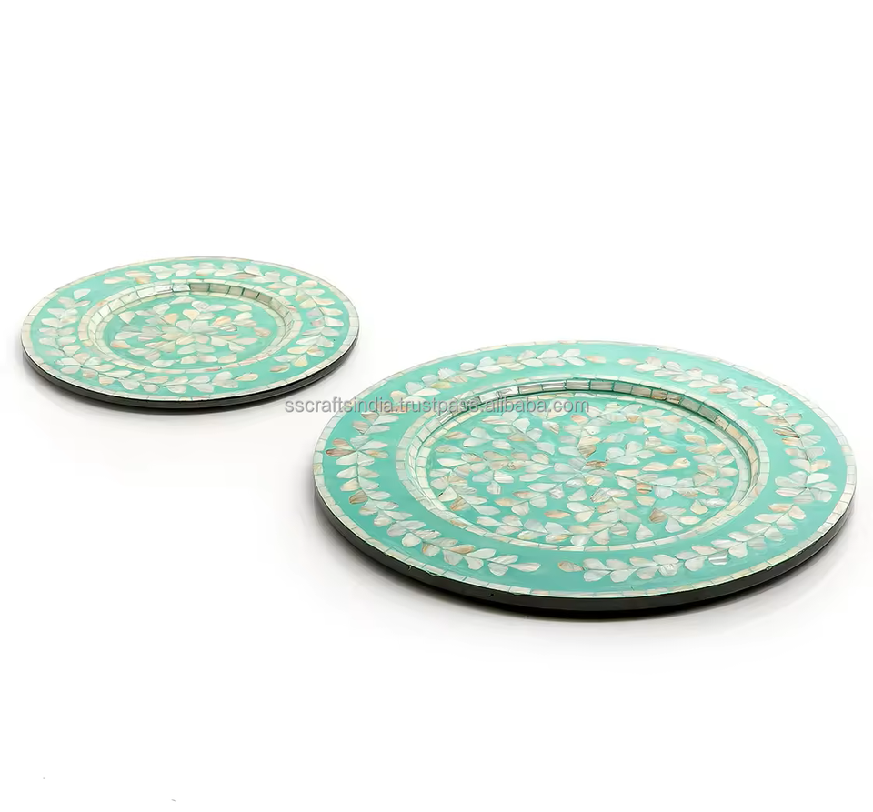 ถาดเสิร์ฟทรงสี่เหลี่ยมผืนผ้าทำจากช็อคโกแลตแผ่นรองที่ชาร์จในทะเลทำด้วยมือทำจากเปลือกหอยมุกอินเดีย