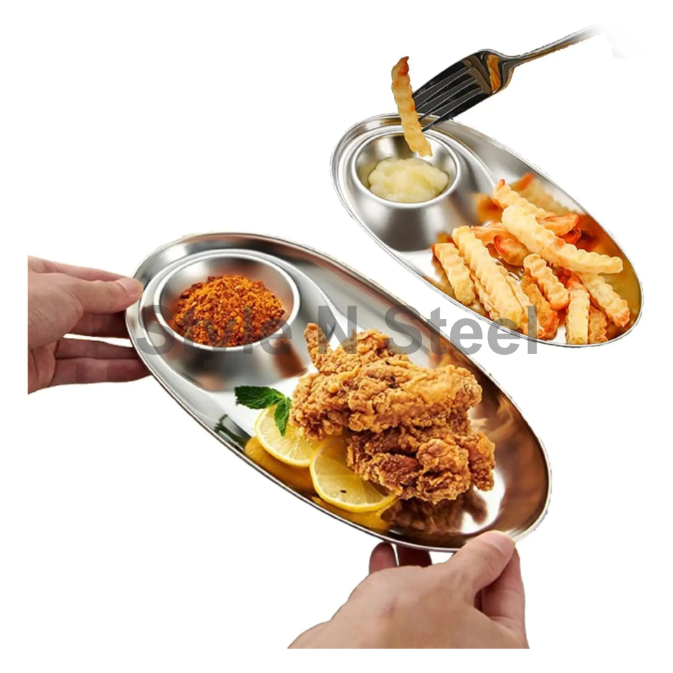 จานเสิร์ฟอาหารสแตนเลสทรงกลมสแตนเลสถาดสี่เหลี่ยมทันสมัย