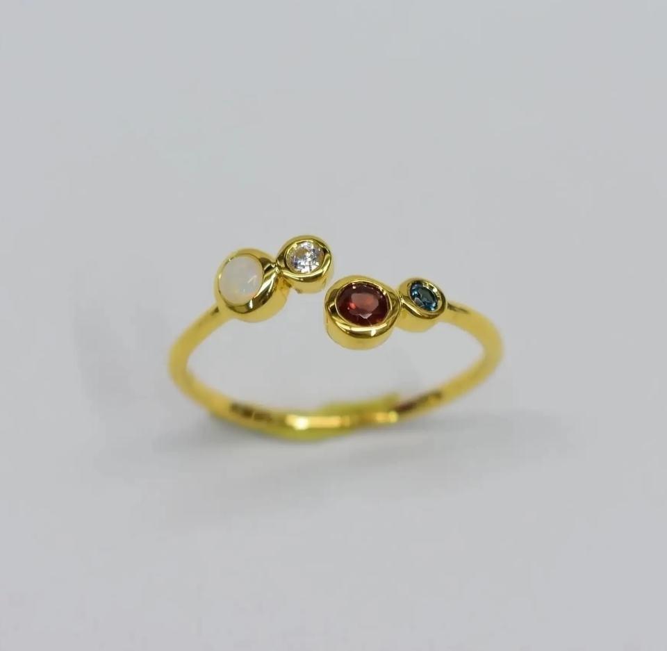 แหวนโกเมนโอปอลจากออสเตรเลีย S925เคลือบทอง14K แบบปรับแต่งได้มีเสน่ห์สำหรับงานแต่งงาน