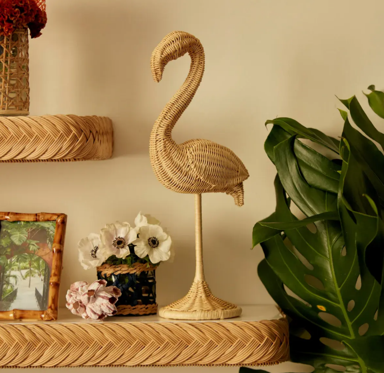 นกฟลามิงโกหวายธรรมชาติที่มีเสน่ห์ดึงดูดการตกแต่งสไตล์ร่วมสมัยด้วยหวายสำหรับบ้านร้านอาหารโรงแรม