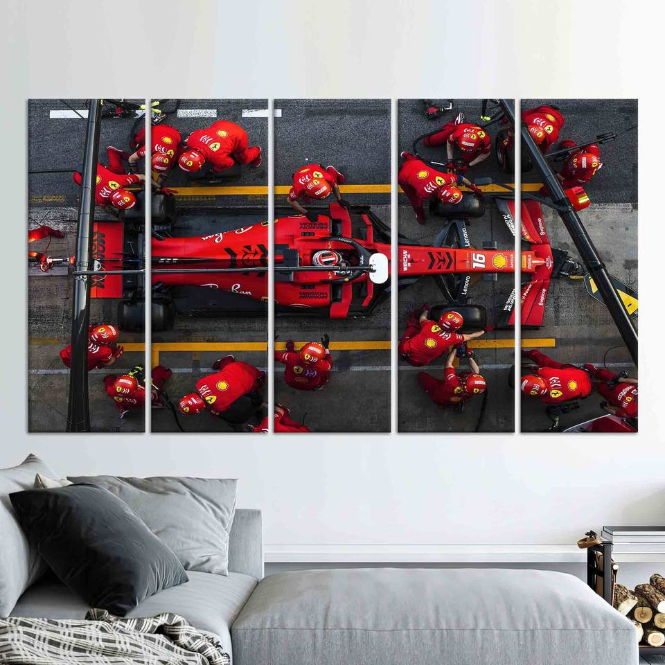 ภาพพิมพ์บนผ้าใบชาร์ลส์ เลแคลร์ค: ภาพพิมพ์ตกแต่งผนังบ้านสไตล์ฟอร์มูล่าวัน พิท สต็อป ชุดผ้าใบ 5 ชิ้น