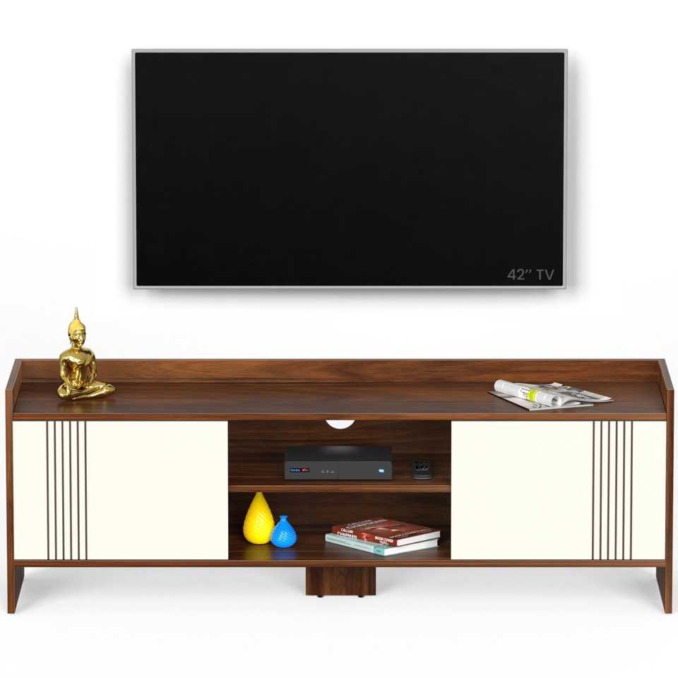 ชั้นวางทีวีชาร์ลีย์สีเมเปิลและสีขาว ดีไซน์หรูหราและมีสไตล์สำหรับทีวีของคุณ