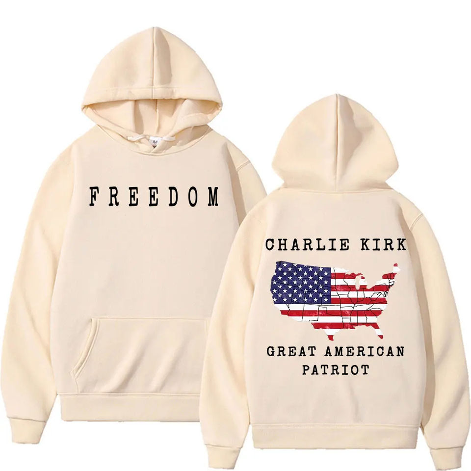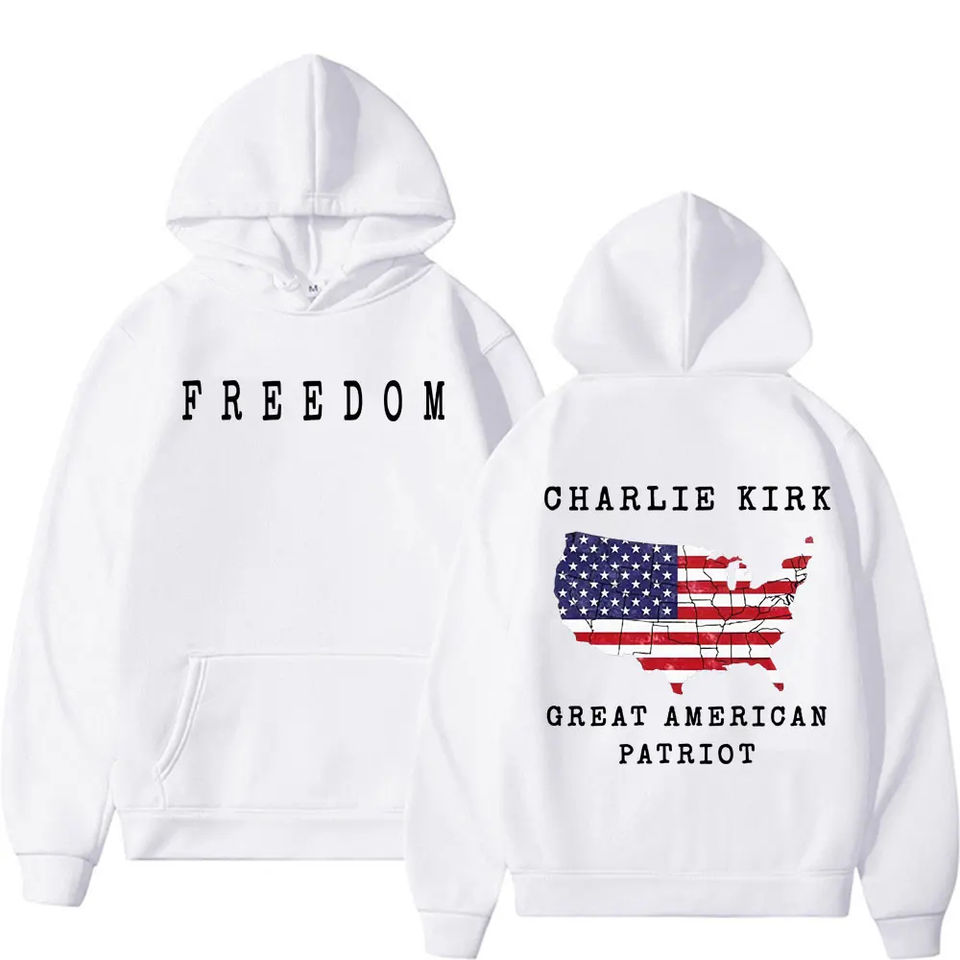 Charlie Kirk A Great American patiot VINTAGE hoodies ผู้ชายผู้หญิงขนแกะลำลองคุณภาพสูงเสื้อสวมหัวแบบฮิปสเตอร์แฟชั่น