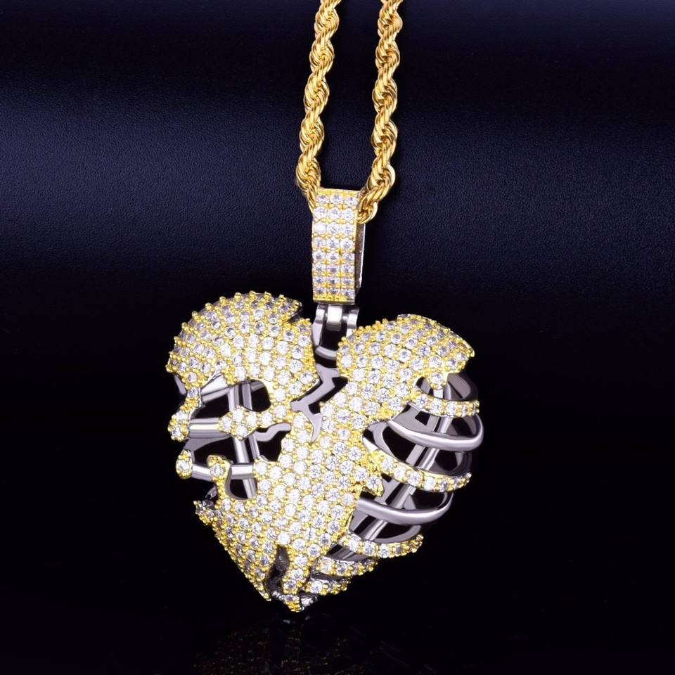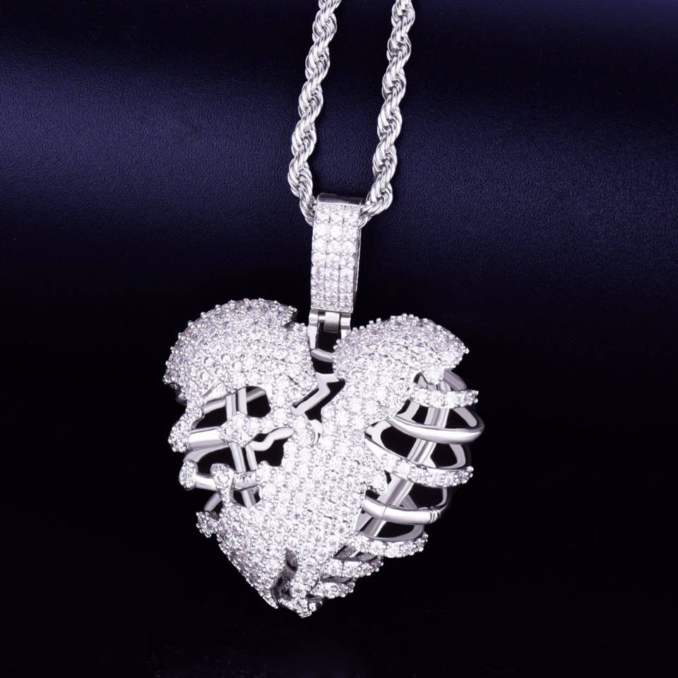 เสน่ห์จี้โครงกระดูกหัวใจขาดฮิปฮอปประดับด้วยเพชรโมอิส925สีเงินแท้ทรงกลม