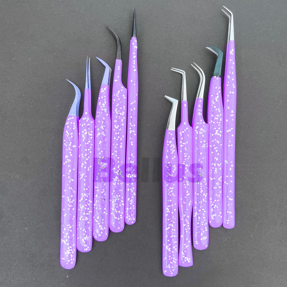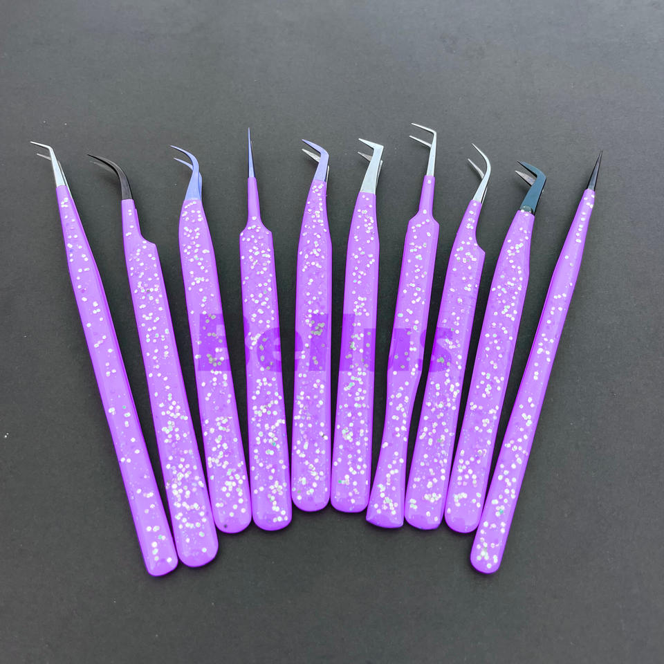 แหนบขนตาปลอมแบบแยกกลิตเตอร์สำหรับการต่อขนตาเครื่องมือสเตนเลสแบบปรับแต่งแบรนด์ได้ความแม่นยำเป็นมิตรกับสิ่งแวดล้อม