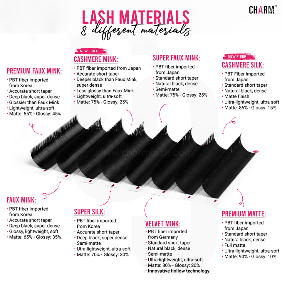 CharmLash Lash Extension Supplies Silk Lashes Russian Volume Lash Extensions High Quality Korean PBT Fiber Comfortable Oil-free