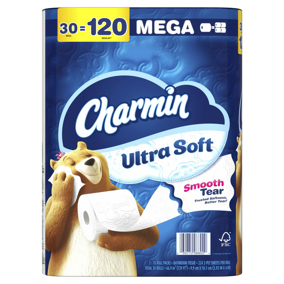 Charmin-อัลตร้าซอฟท์30ล้านม้วนกระดาษชำระ244ต่อม้วนแข็งแรงและซักได้แบบใช้แล้วทิ้ง