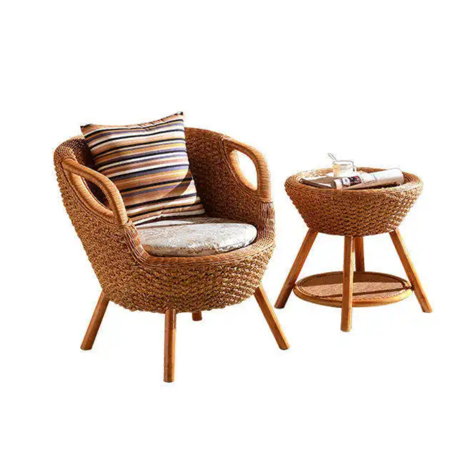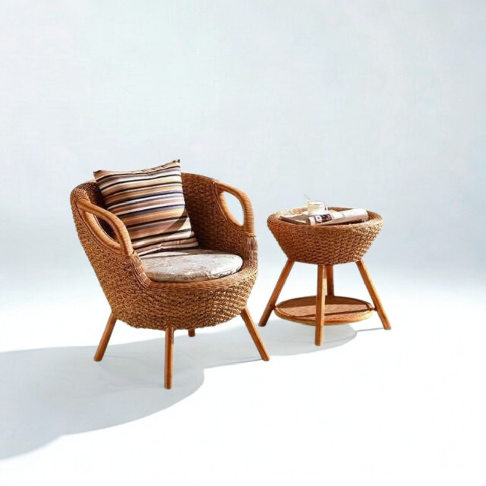 เก้าอี้ใบตองสุดมีเสน่ห์และชุดโต๊ะข้างเหมาะสำหรับพื้นที่ในร่มที่หรูหราและดูเป็นธรรมชาติ
