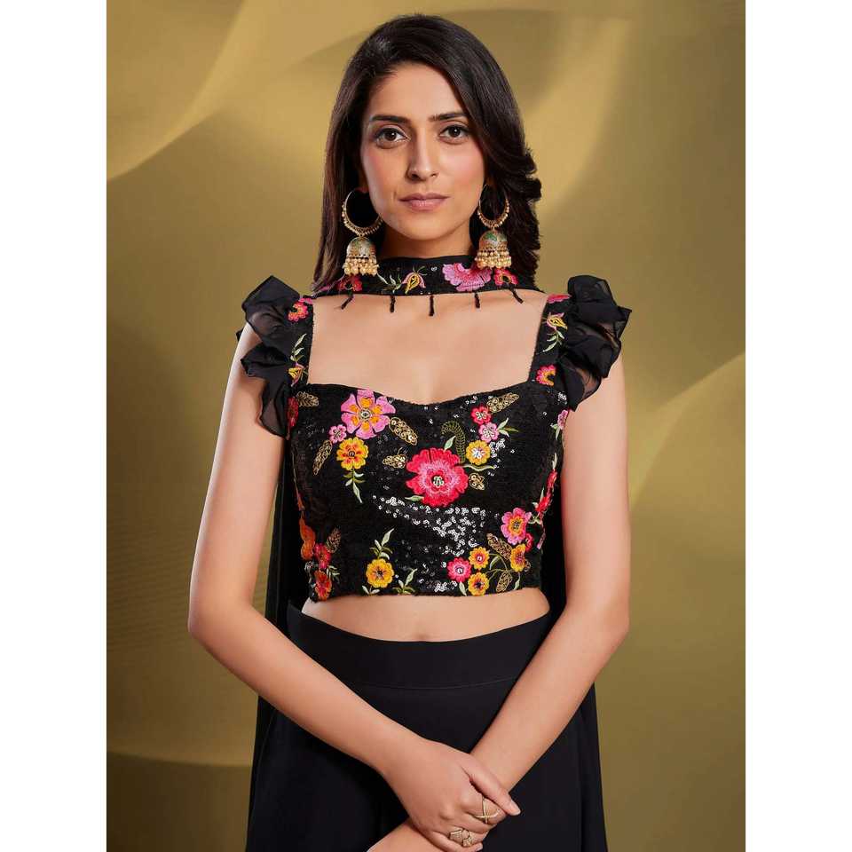 Charming Black Georgette Reception Wear Lehenga Choli with Sequins Evening Dresses