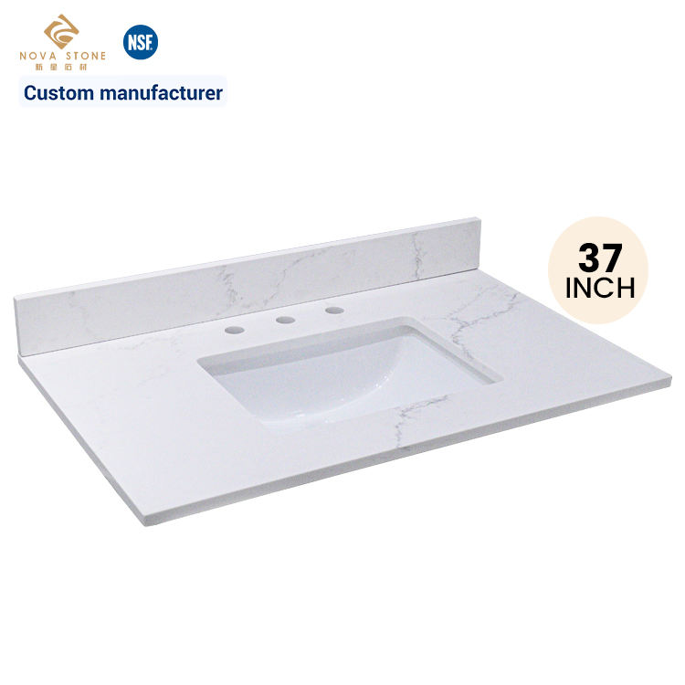 เคาน์เตอร์อ่างล้างจานหินเทียมขนาด37นิ้วสำหรับห้องน้ำดีไซน์ทรงเสน่ห์