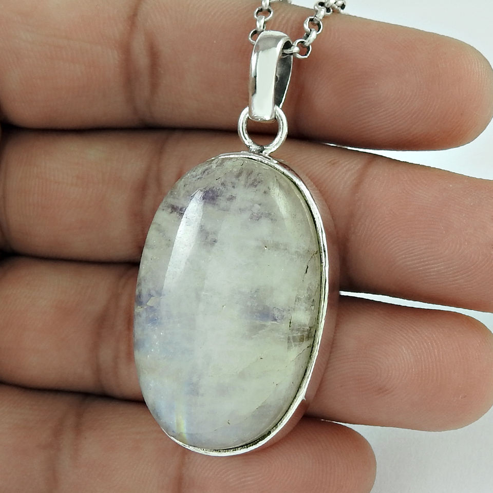การออกแบบที่น่าสนใจ 925 เงินสเตอร์ลิงธรรมชาติ Rainbow มูนสโตนจี้ก้อนเครื่องประดับทําด้วยมือราคาขายส่งจํานวนมากซัพพลายเออร์