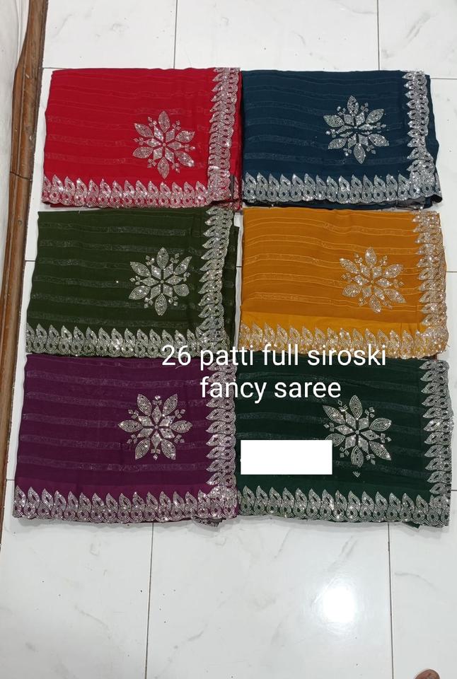 ชุดส่าหรีดีไซน์เนอร์แสนสวยสำหรับงานปาร์ตี้งานปักลวดลายอย่างประณีตและรายละเอียดหอยพัดผสมผ้าชีฟองออร์แกนซ่าสำหรับผู้ซื้อทั่วโลก