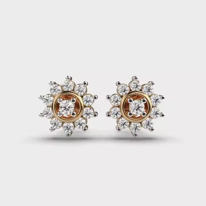 ต่างหูเพชรเม็ดเดี่ยวพร้อมลายดอกไม้สีขาวและสีโรสโกลด์สำหรับงานปาร์ตี้ในโอกาสต่างๆ
