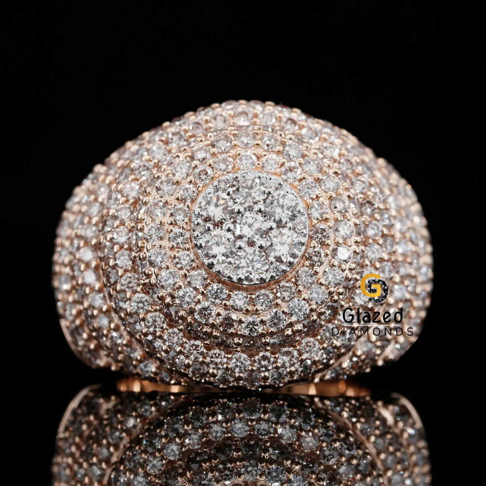 แหวนฮิปฮอปทรงกลมสุดเก๋มีเสน่ห์สีเหลืองทอง10K ประดับเพชรโมอิสสีใสสำหรับผู้ชาย
