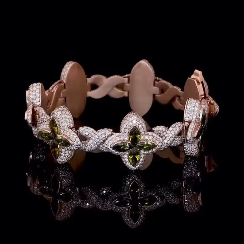 สร้อยข้อมือสุดหรูได้รับการรับรองจากห้องปฏิบัติการสีเขียวของผู้ชายมีเพชรที่ตัดได้อย่างยอดเยี่ยม