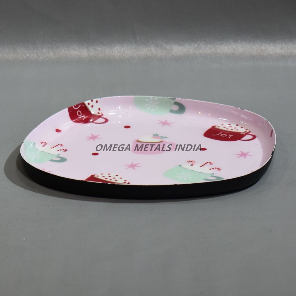 ถาดเสิร์ฟสีชมพูรูปไข่พร้อมถ้วยสีสันสดใสเหมาะสำหรับเสิร์ฟของว่างและเพิ่มกำลังใจให้กับการสังสรรค์