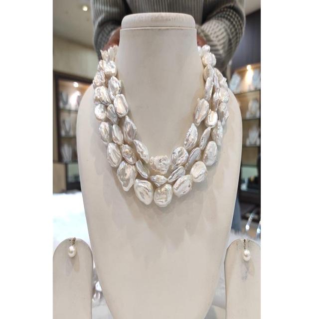 สร้อยคอไข่มุกบาโรกสีขาวคุณภาพพรีเมียมระดับ AA 3 แถว พร้อมต่างหู ดีไซน์สวยหรูทันสมัย เหมาะสำหรับผู้หญิงและเด็กผู้หญิงในงานแต่งงาน