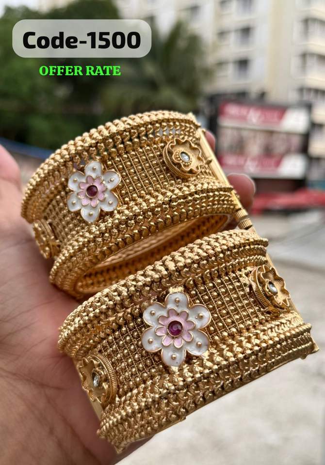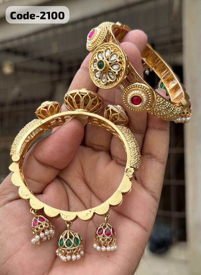 กำไลโลหะราชวัติดี ดีไซน์สวยงาม ประดับด้วยหินหลากสีสันลายนูนสีทอง | เครื่องประดับแบบดั้งเดิมที่สง่างามสำหรับงานอีเวนต์และงานปาร์ตี้