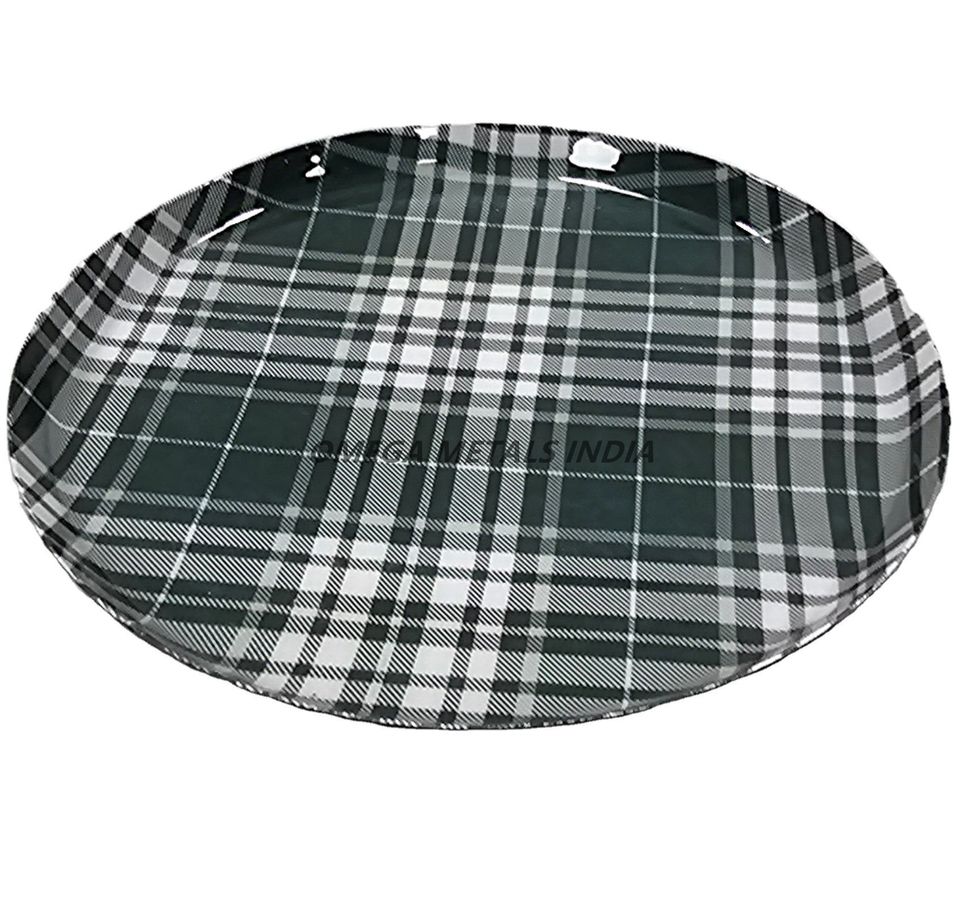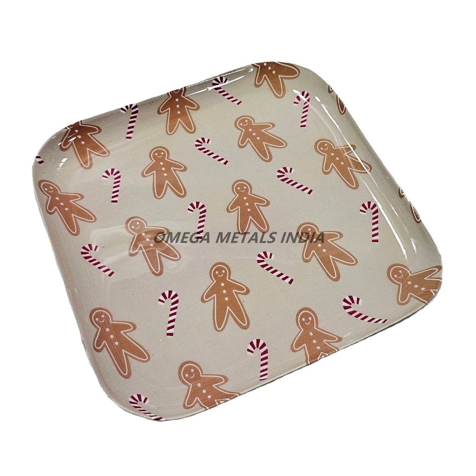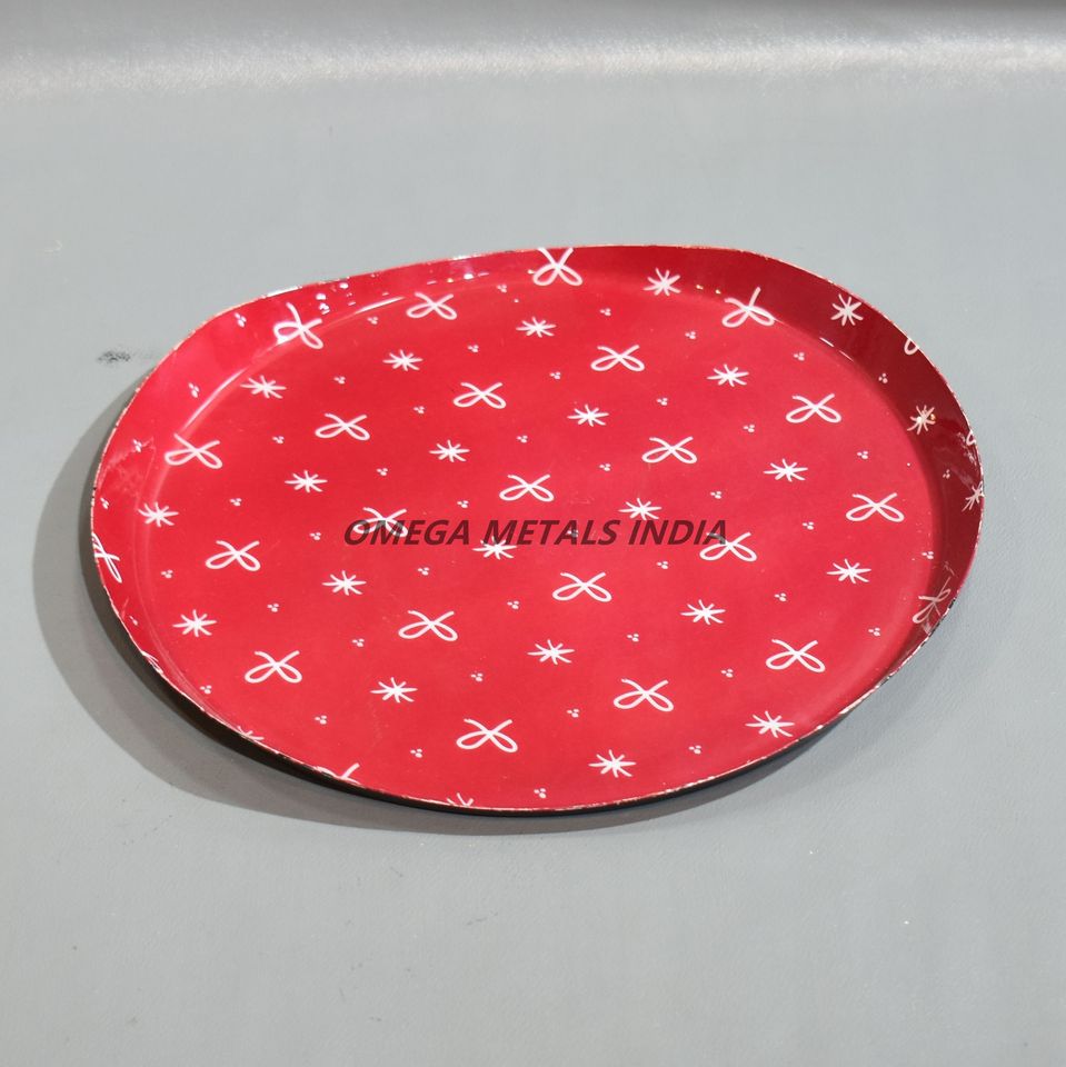 ถาดตกแต่งสีแดงที่มีเสน่ห์ที่มีรูปทรงรีและลวดลายสีขาวสนุกสนานเหมาะสำหรับการเสิร์ฟขนมและการตกแต่งตามเทศกาล