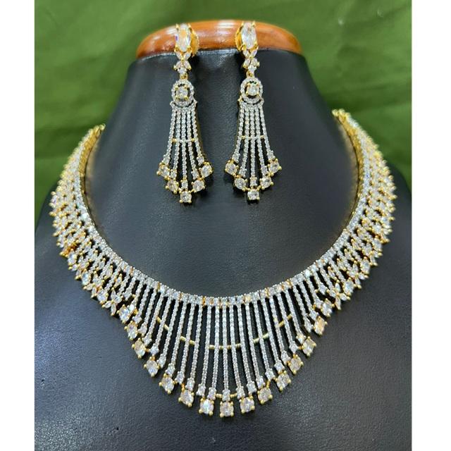 ชุดสร้อยคอพร้อมต่างหูประดับเพชรซิคอนชุบทองคุณภาพสูง ดีไซน์สวยหรู โดดเด่นสะดุดตา เหมาะสำหรับงานหมั้น งานครบรอบ งานแต่งงาน และงานเลี้ยง