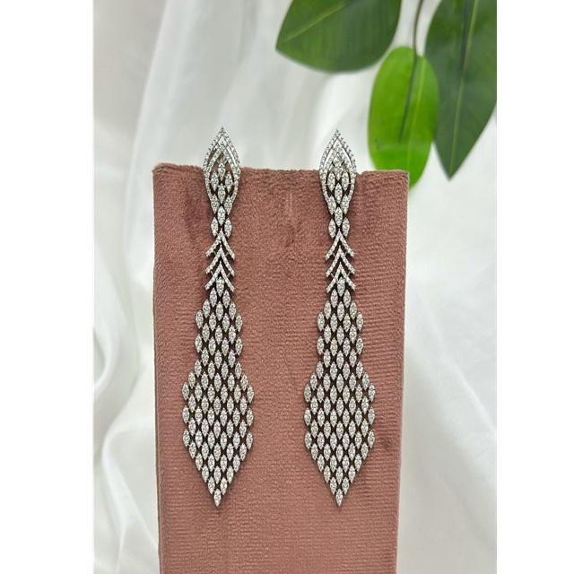 ต่างหูห้อยเพทายชุบเงินทรงเสน่ห์สำหรับผู้หญิงสาวๆ สวมใส่ในงานปาร์ตี้สุดอินเทรนด์