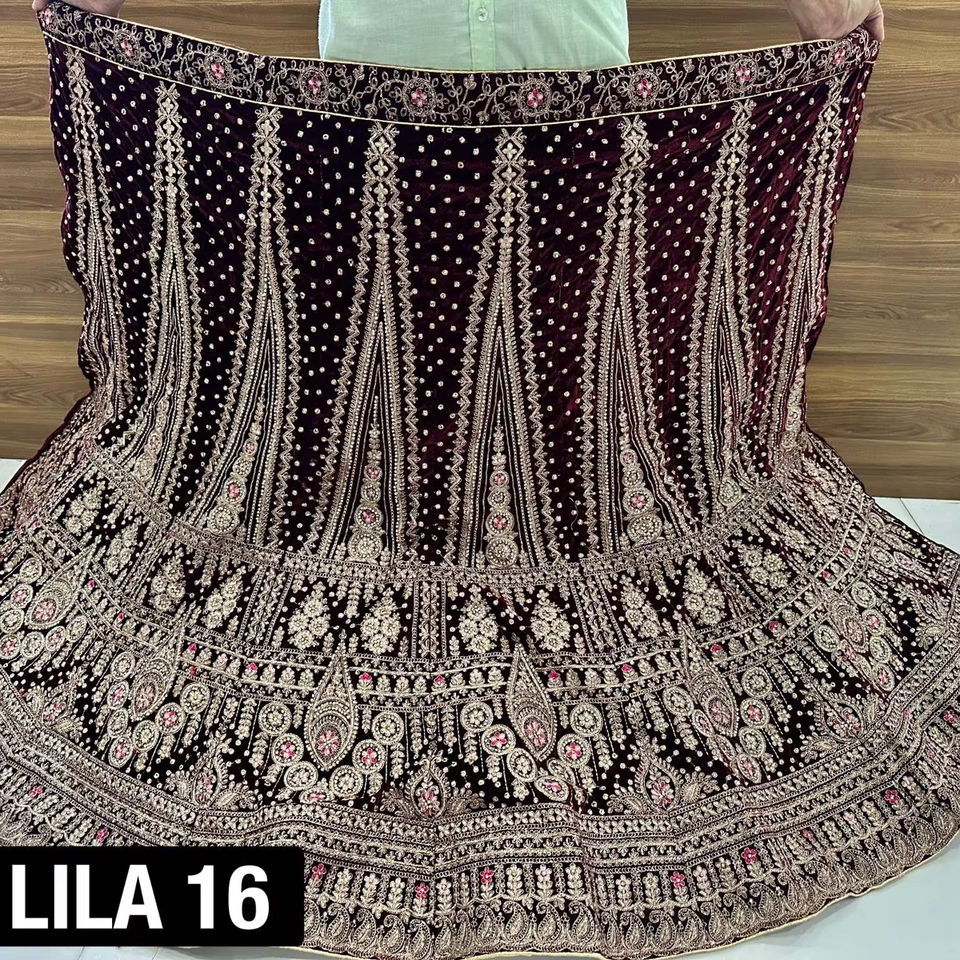 Lehenga กำมะหยี่ที่มีเสน่ห์สำหรับงานแต่งจาร์กันหนักสองชั้นสามารถใส่ได้ยาวพร้อมการทำงานและตาข่ายนุ่ม