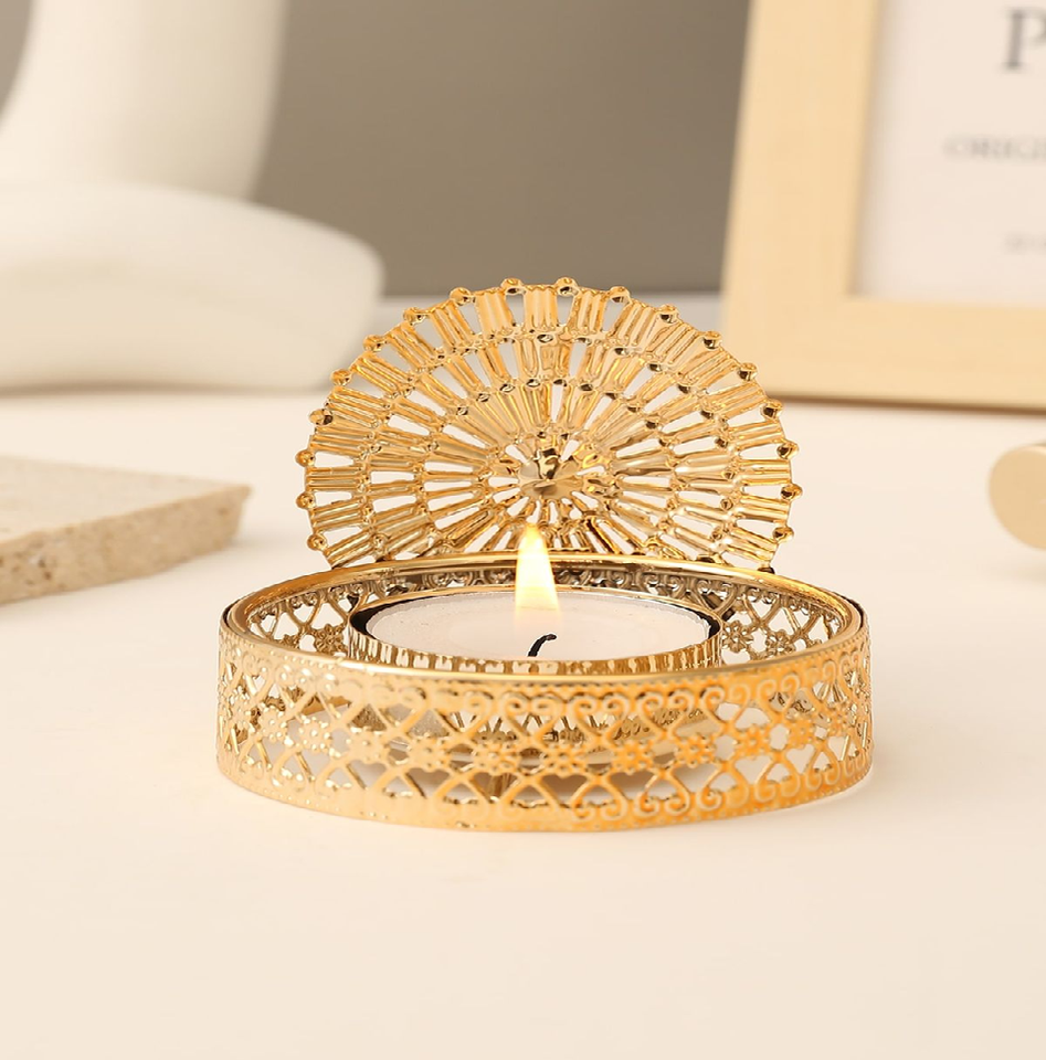 เชิงเทียนรูปนกและใบไม้สุดน่ารักสำหรับเทียนทีไลท์คู่ ดีไซน์รังลวดตาข่ายแบบศิลปะ ราคาขายส่ง