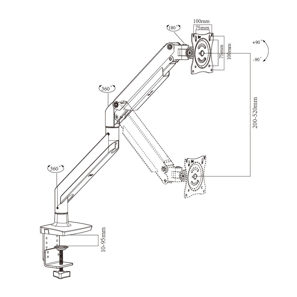 Charmount 27 "-32" แขนมอนิเตอร์พร้อมกลไกสปริงรองรับพอร์ต USB มุมเอียง90องศา