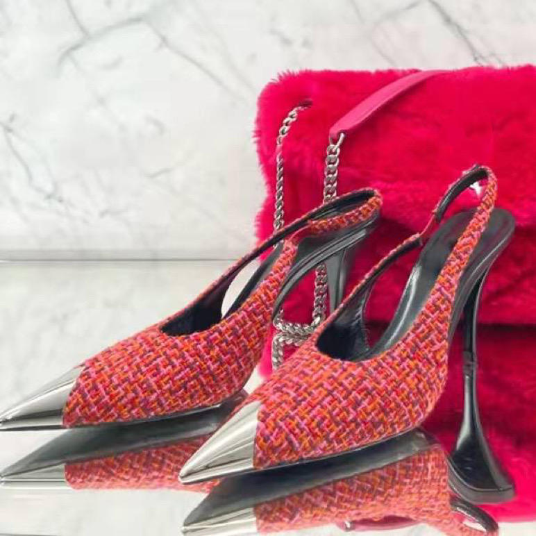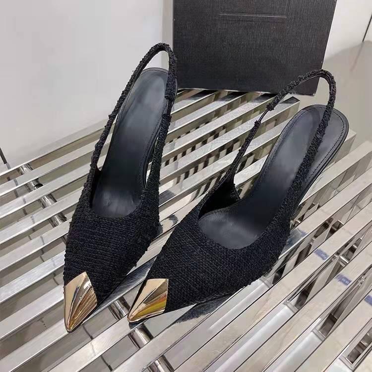 รองเท้าส้นสูงผู้หญิง ดีไซน์หรูหรา แฟชั่นสำหรับใส่ทำงาน ปลายเหล็ก ปิดส้นแบบสลิงแบ็ค รุ่นปี 2025