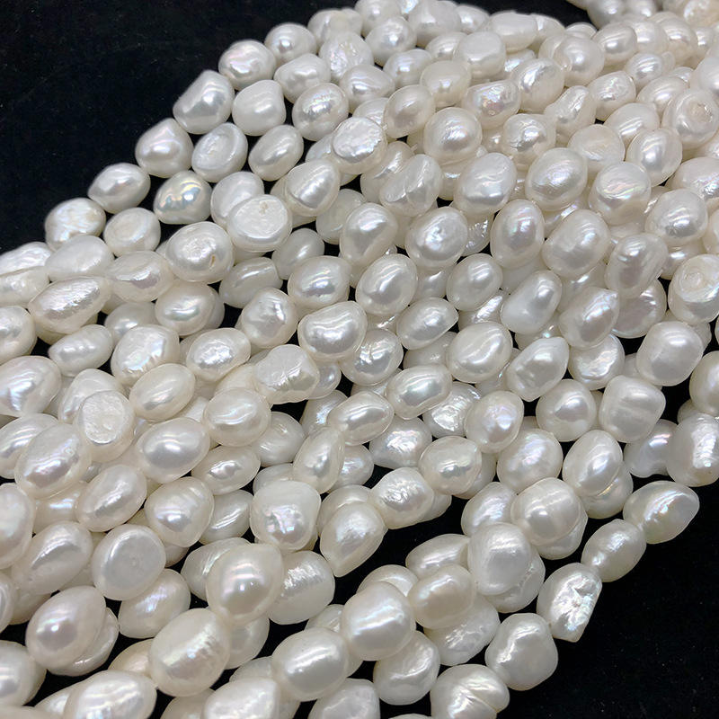 รูแนวตั้ง10-11มม. ทั้งสองด้านไข่มุกไข่มุกน้ำจืดธรรมชาติรูปทรงบาร็อคเรียบ