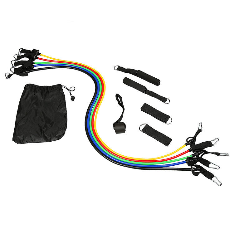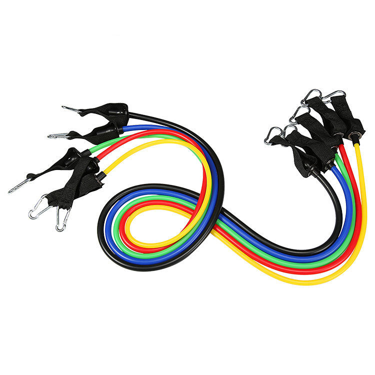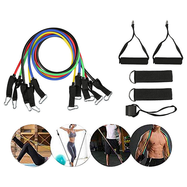 ชุดท่อสายรัดยาง TPE 11ชิ้นยืดหยุ่นสูง40-60ปอนด์สำหรับฝึกออกกำลังกายในยิมปรับได้5ระดับ