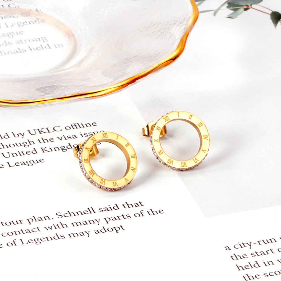 ต่างหูทองชุบ 9 มม. ราคาถูก ชุดต่างหูเพชรดำเซอร์คอนน่ารักสำหรับผู้หญิง