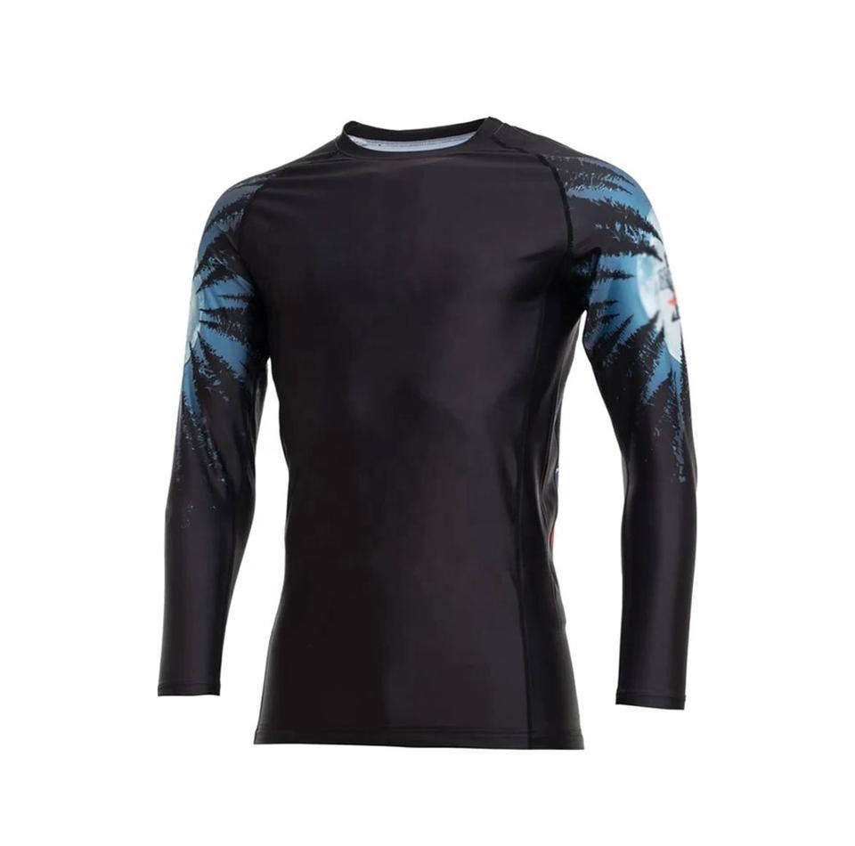 เสื้อรัดกล้าม BJJ ราคาประหยัดสำหรับผู้ชาย เสื้อคอมเพรสชั่น พิมพ์ลายแบบซับลิเมชั่นตามสั่ง สำหรับผู้ใหญ่ แขนยาว คุณภาพสูง บริการ OEM