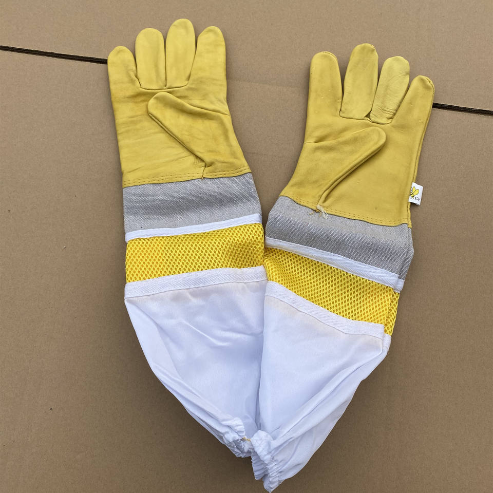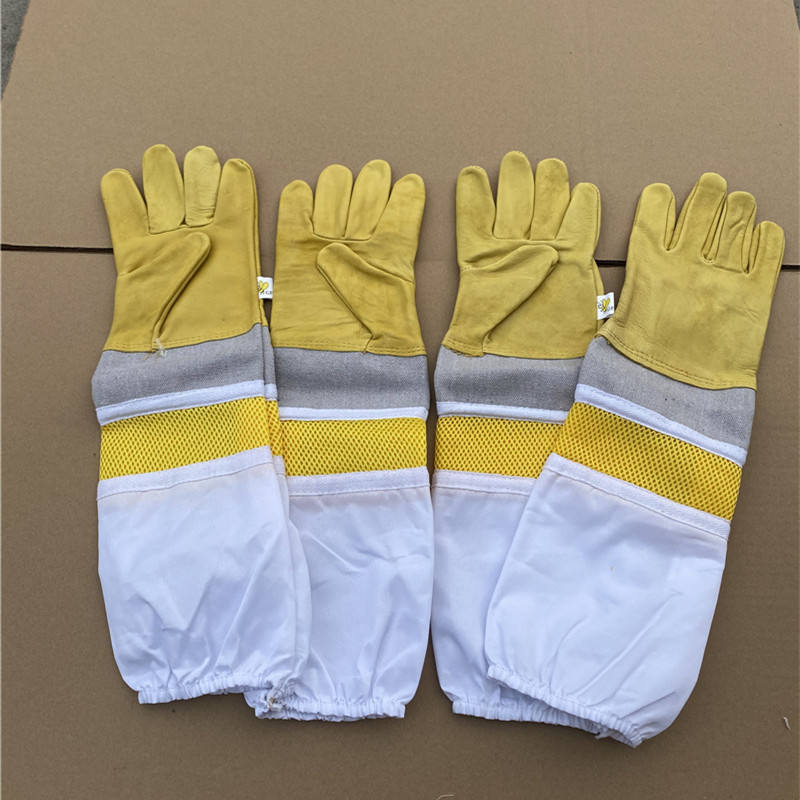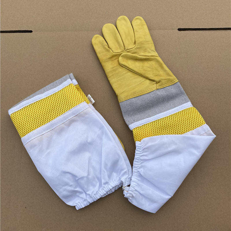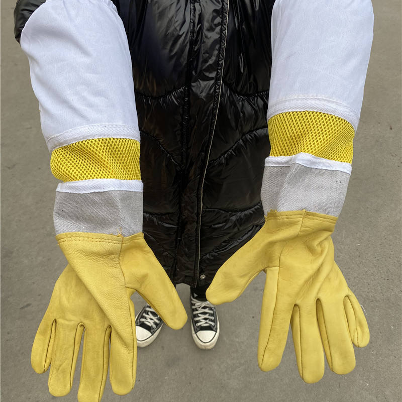 ราคาถูกถุงมือสำหรับการเลี้ยงผึ้งที่ทำจากหนังแพะและผ้าฝ้าย