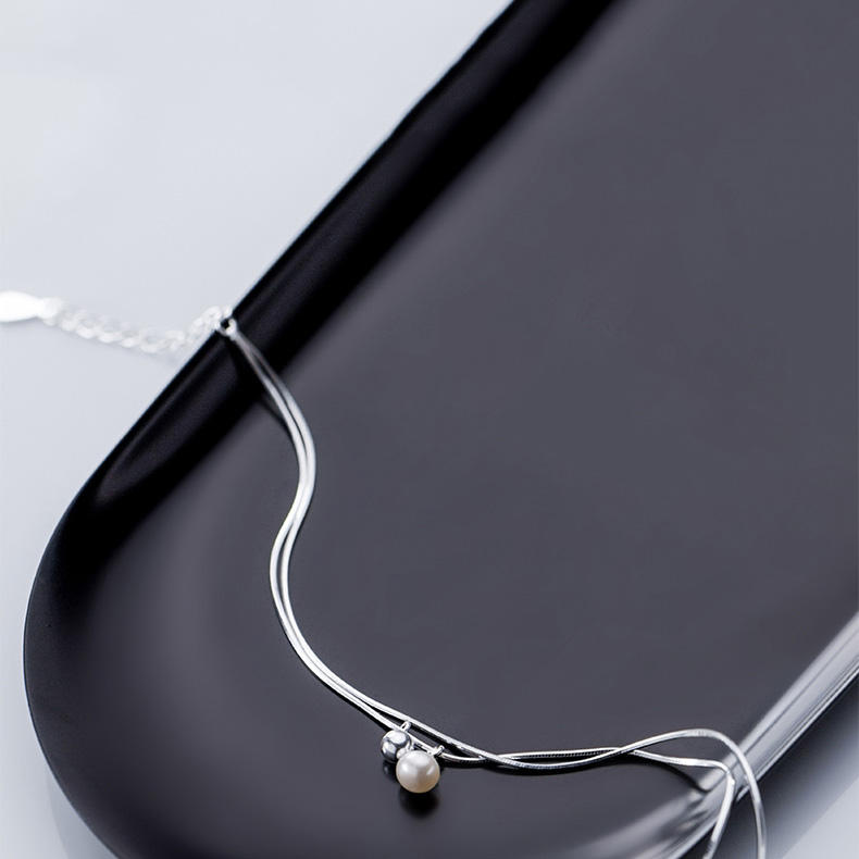 กระดิ่งรูปงูสำหรับ925เงินสเตอร์ลิงสร้อยข้อมือนำโชคทำจากไข่มุก