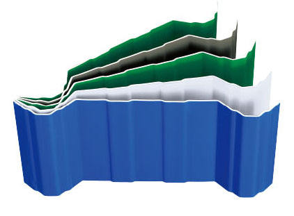 วัสดุก่อสร้างราคาประหยัด กระเบื้องหลังคา APVC ฉนวนกันความร้อน น้ำหนักเบา แผ่นหลังคาเคลือบ ASA