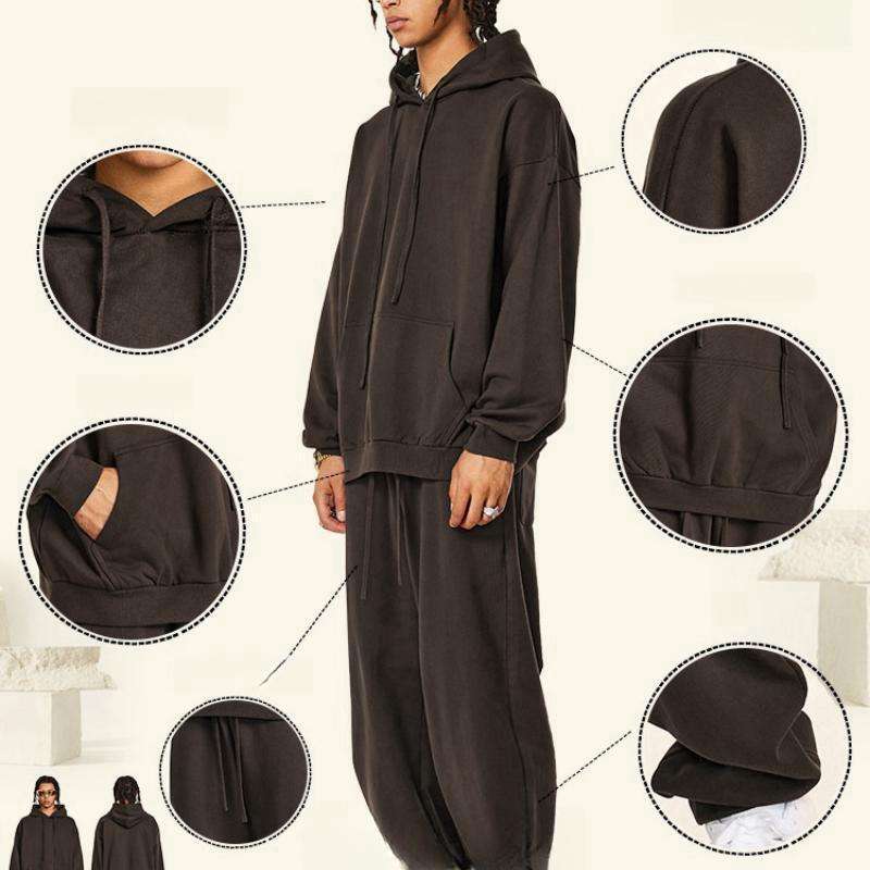 ชุดวอร์มสำหรับผู้ชายและผู้หญิงชุดออกกำลังกาย2ชิ้นเสื้อฮู้ด2025 440กรัมชุดวิ่งออกกำลังกาย