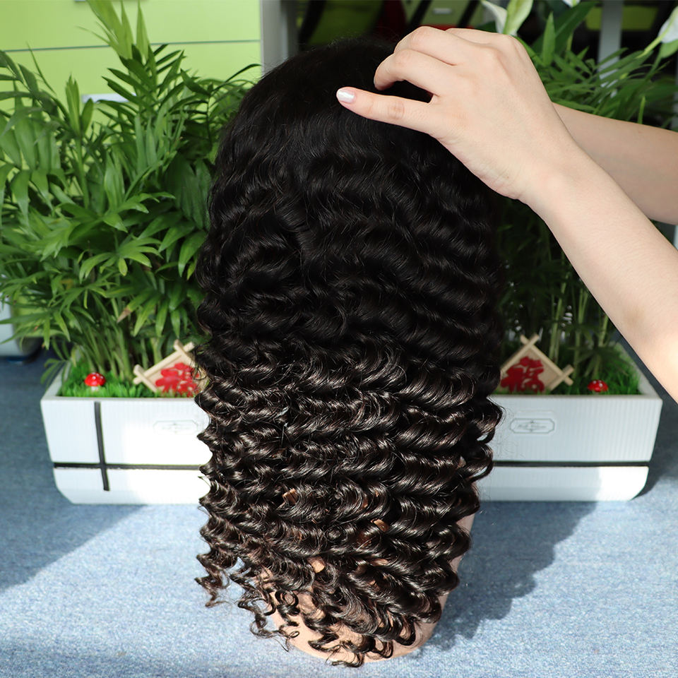 วิกผมลอนแบบลึกสำหรับผู้หญิงผิวดำวิกผมมนุษย์แบบบ็อบสั้นสีธรรมชาติติดลูกไม้ด้านหน้าแบบ HD เต็มศีรษะสีดำ