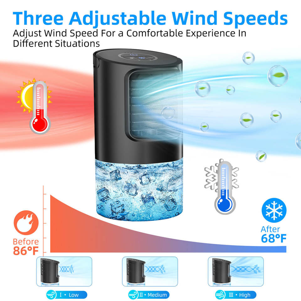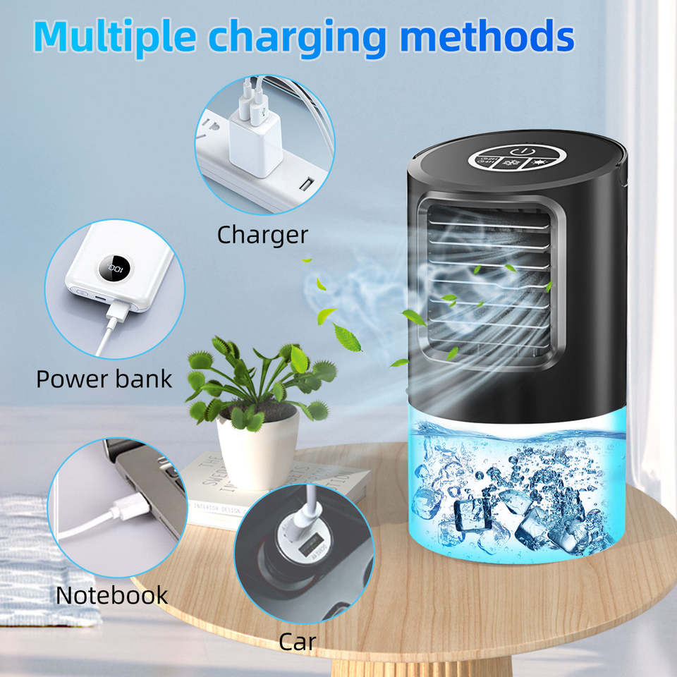 พัดลมไอเย็นพกพาไฟฟ้าราคาถูก ผลิตภัณฑ์ใหม่ เครื่องปรับอากาศขนาดเล็ก พัดลมน้ำมินิแบบพกพา ช่องเสียบ USB