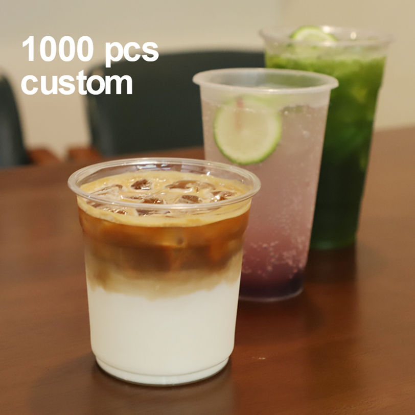 ถ้วยชา PET ถ้วยพลาสติกแบบใสพร้อมฝาปิด500มล. 700มล. ใช้ซ้ำได้
