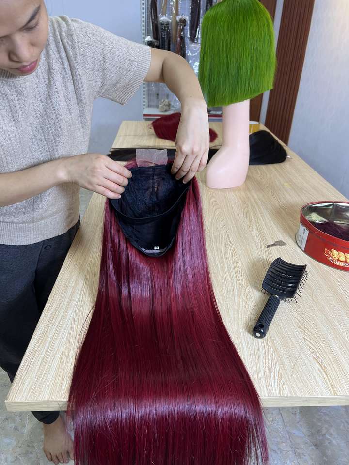 วิกผมแท้24นิ้วเกรด12สีเบอร์กันดี