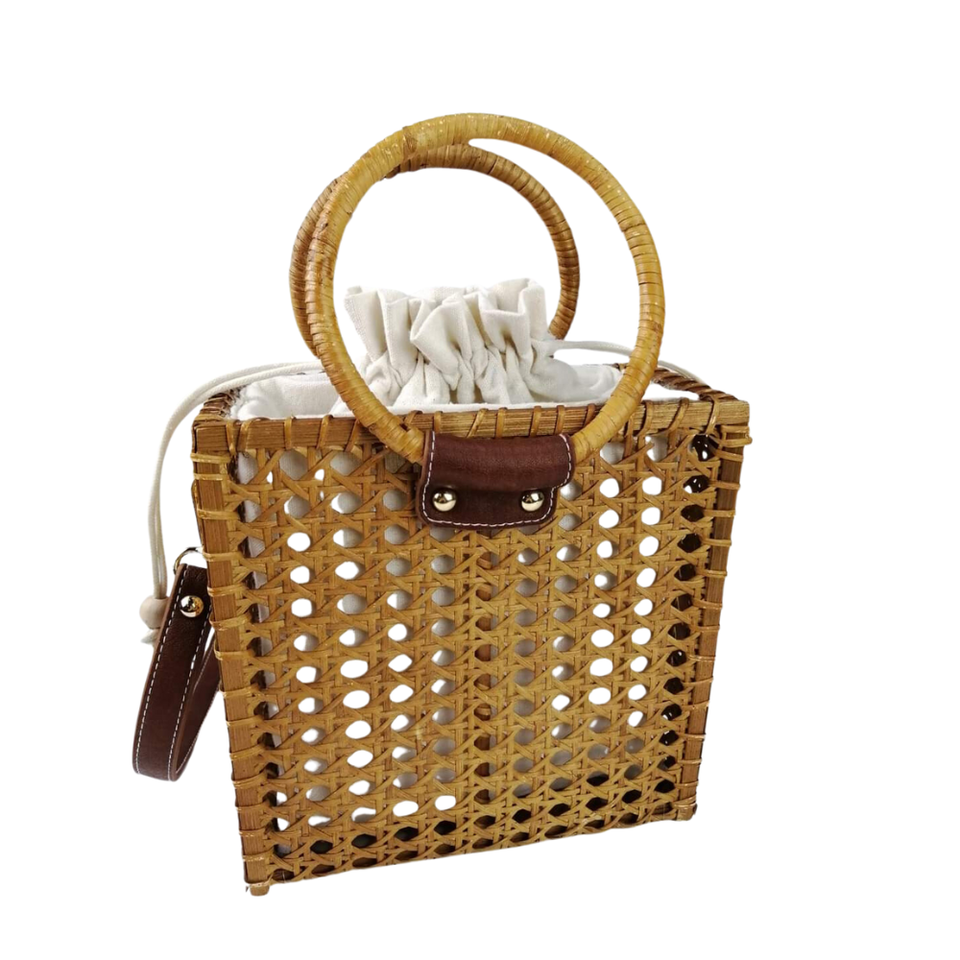 กระเป๋าถือสานหนังแท้ราคาถูกพร้อมหูหิ้วสองข้างสำหรับผู้หญิงแฟชั่นฤดูร้อนชายหาดช้อปปิ้ง