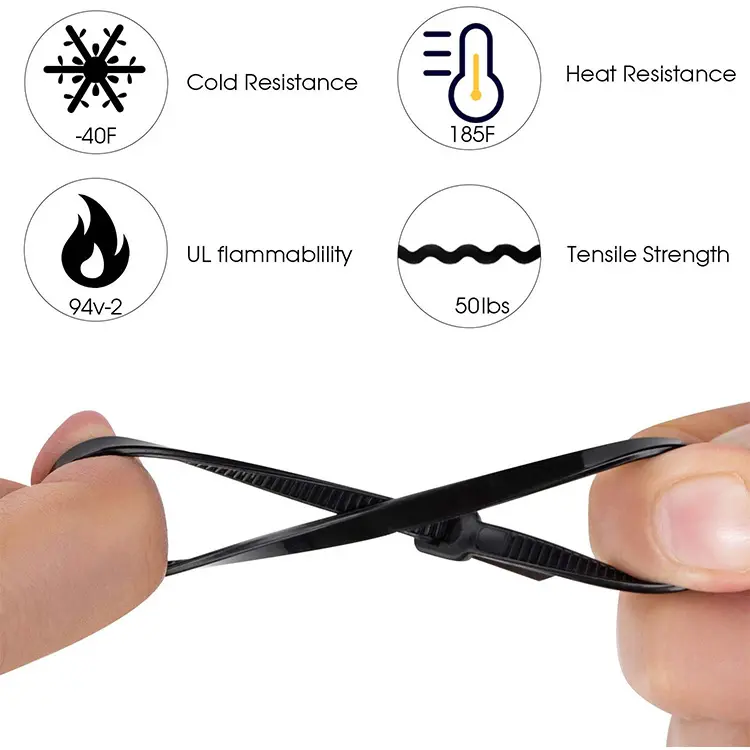 สายรัดเคเบิลไนลอนสีดำคุณภาพสูงราคาประหยัด ขนาด 200 มม. ใช้ในงานอุตสาหกรรม สำหรับการบรรจุภัณฑ์ด้วยมือ คุณภาพเยี่ยม