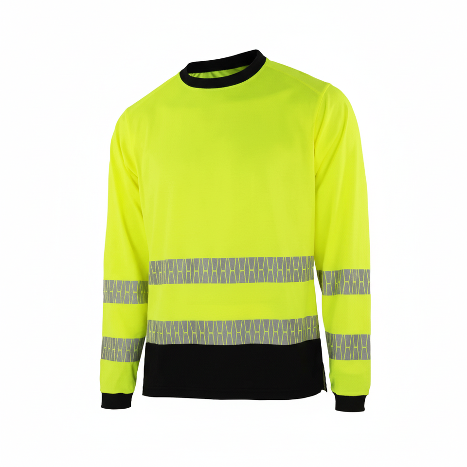 เสื้อยืดเพื่อความปลอดภัยแขนยาวราคาถูกเสื้อยืดสำหรับผู้ชายสะท้อนแสงมองเห็นได้ชัดเจนเสื้อทำงานโลโก้ตามสั่ง