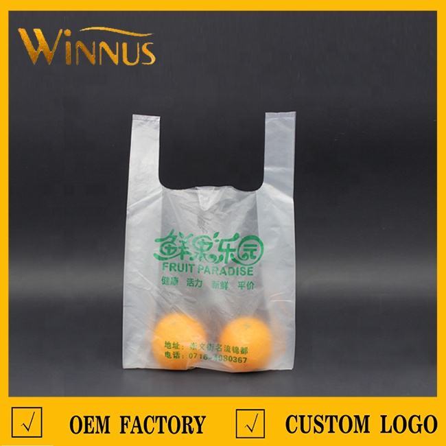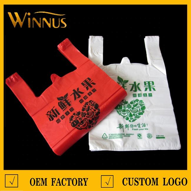 Heapพิมพ์โลโก้น้ำผลไม้ช้อปปิ้งพกพาพลาสติกเสื้อยืดร้านขายของชำกระเป๋าหมายเลขชื่อ