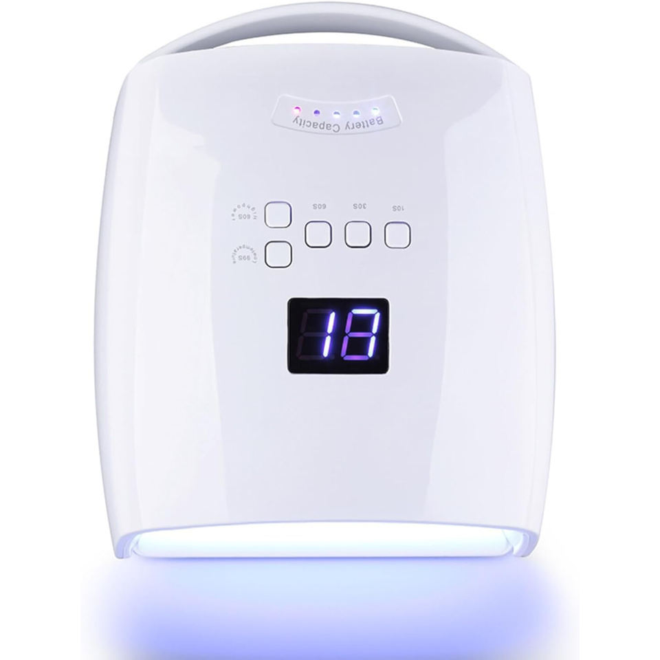 โคมไฟทาเล็บแบบชาร์จไฟได้พร้อมที่จับโคมไฟแลคเกอร์สีแดงแสง UV สำหรับเล็บไร้สาย48W โคมไฟ LED UV