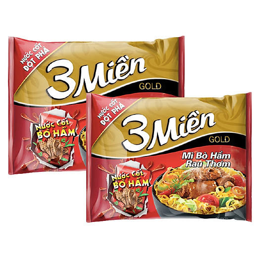 บะหมี่กึ่งสำเร็จรูป 3 มิ่น โกลด์ รสเนื้อตุ๋นสมุนไพร กล่อง ยี่ห้อเวียดนาม 65 กรัม/ถ้วย ราคาถูก ปรุงสุกใน 2-3 นาที