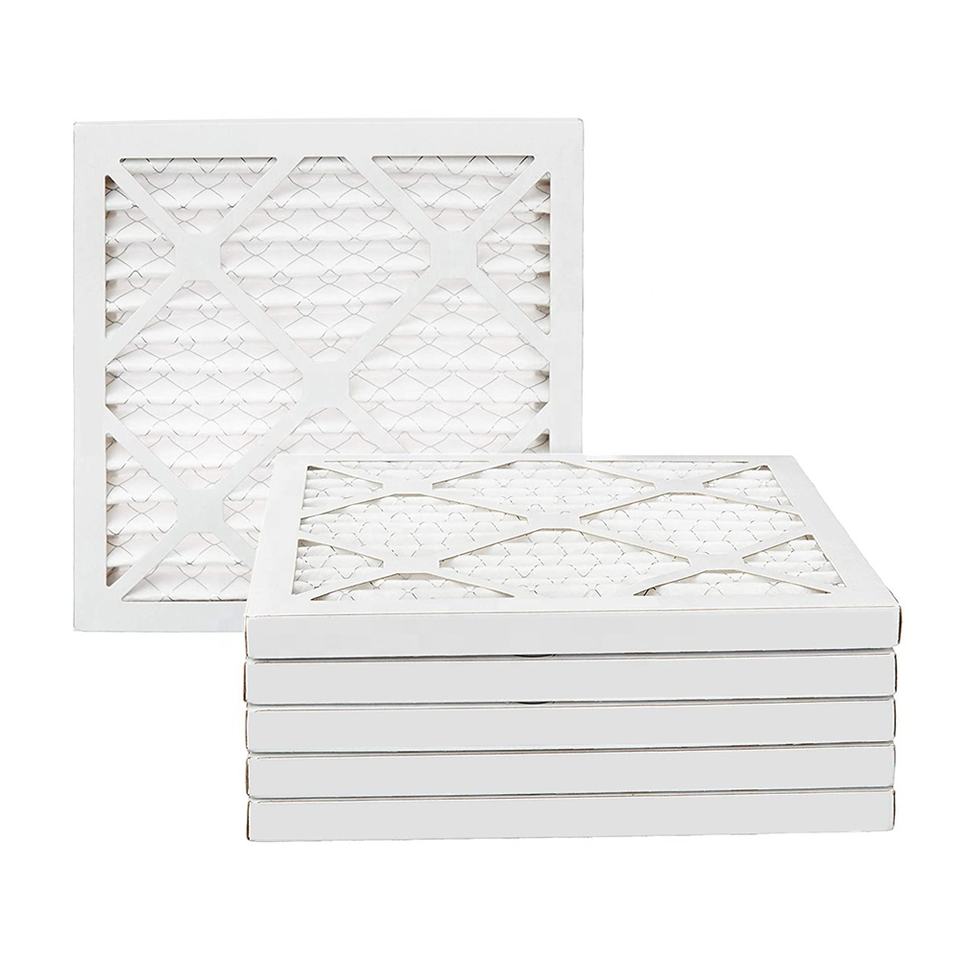 แผ่นกรองอากาศราคาประหยัดสำหรับเครื่องปรับอากาศและเครื่องทำความร้อน แบบจีบ มีโครงกระดาษแข็ง Merv8 Merv11 Merv13
