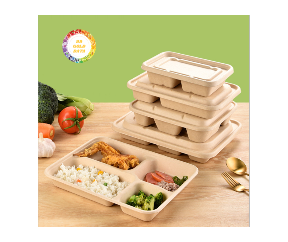 กล่องข้าวทำจากชานอ้อยแบบย่อยสลายได้ภาชนะใส่อาหารแบบหลายช่องของเวียดนามมีฝาปิด